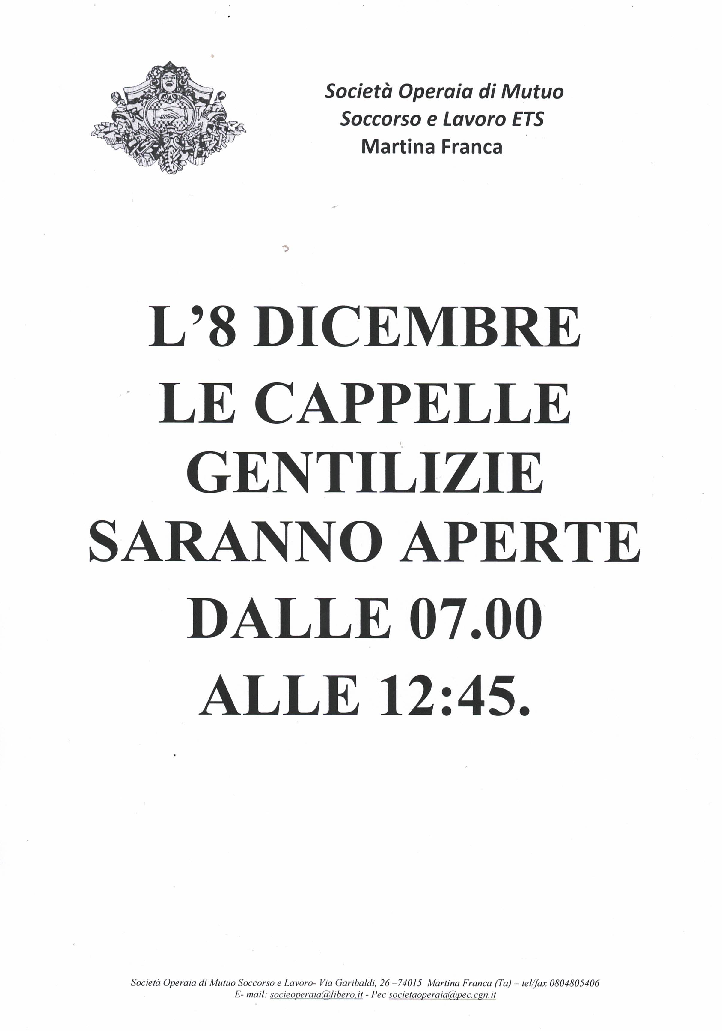 CAPPELLE GENTILIZIE 8 DICEMBRE 2025